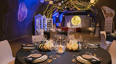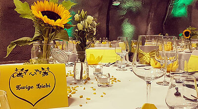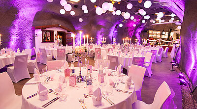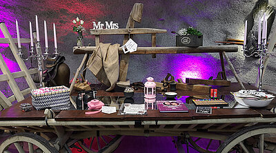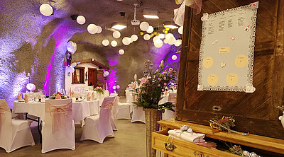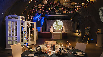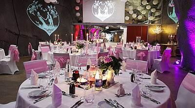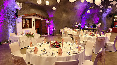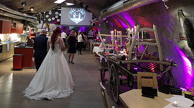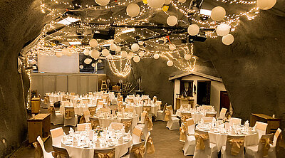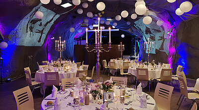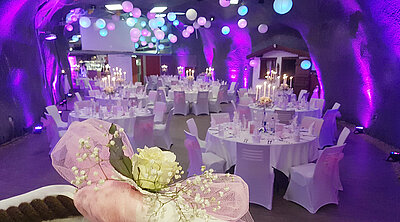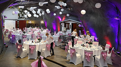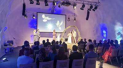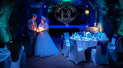 Bei uns verwandeln wir die Event-Kaverne nach Wunsch für unsere glücklichen Paare.