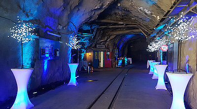Unser Restaurant Bereich mit der Event-Kaverne und unsere Seminarräumlichkeiten sind alle beheizt. Sie und Ihre Gäste dürfen sich also passend zur Feier elegant kleiden. Falls Sie Programmpunkte im Stollen ausserhalb dieser Räumlichkeiten geplant haben, empfiehlt zu dieser Zeit gutes Schuhwerk und eine Jacke zu tragen. Dort ist es nämlich nur ca. 15 Grad, manchmal etwas uneben und der Boden nicht so sauber wie im Restaurant.