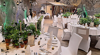 Es gibt so viele Möglichkeiten! Am besten lassen sie sich von Bildern auf unserer Webseite inspirieren und in einem persönlichen Gespräch vor Ort beraten, um das Richtige für Sie zu finden. Wie wäre es zum Beispiel mit einer Fotobox im vorderen Teil des Restaurants, um die Gäste zu unterhalten und so schöne Erinnerungen festzuhalten?