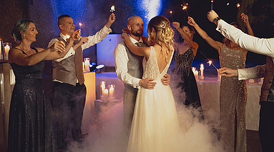 Playlists von Musikplattformen, Präsentationen oder Slide Shows von Gästen auf der grossen Leinwand, der wichtige 1. Tanz begleitet vom Ambiente unserer Discokugel - bei uns funktioniert die Technik.