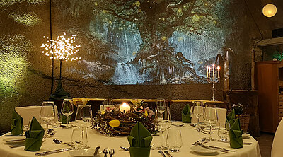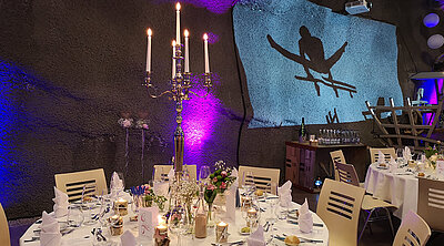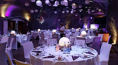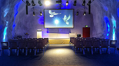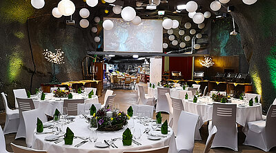 Raummiete Event-Kaverne ist im VSH Catering mit inbegriffen inklusive fix installierte Technik und Reinigung.