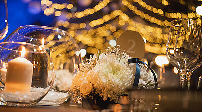 Tisch Dekorationen dürfen gerne bei einer Floristin oder bei einer Hochzeitsplanerin bestellt werden oder mit den bei uns vorhandenen Kerzenständern (5-armig, silbrig, 78cm hoch) für nur CHF 25 pro Stück inklusive Kerzen ergänzt werden.