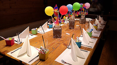 Bei Feiern in unserer Event-Kaverne darf das dazugehörende «Alphüttli» gerne als Kinderzimmer genutzt werden. Dort sind die Kinder etwas für sich und trotzdem mitten in der Feier mit dabei. Malen, Netflix schauen oder mit unserer grossen Hubelino Kugelbahn spielen - so wird es den Kindern nicht langweilig. Gegessen werden kann in der Kinderrunde im Alphüttli oder zusammen mit den Eltern in der Event-Kaverne. Für bis zu 5 Kleinkindersitzen ist schon gesorgt.