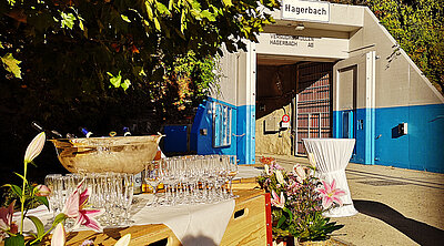 Ja, sehr gerne. Wir bieten die Möglichkeit in den warmen Monaten und bei guter Witterung den Apéro vor dem Stollenportal abzuhalten oder für den Apéro den vorderen Teil des Restaurant Hagerbach zu benutzen. Natürlich gibt es auch die Möglichkeit den Apéro in den Tiefen des Berges durchzuführen.