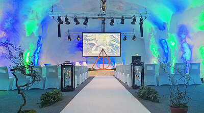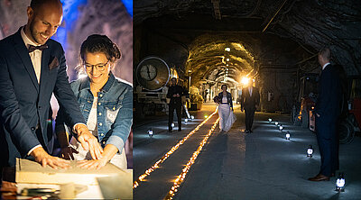 Ja, sehr gerne! Das Stollensystem bietet ganz viele aussergewöhnliche Locations für eine Zeremonie. Verschiedene Orte im felsigen und urchigen Berg für eine einmalige Atmosphäre, vor unserem Datenzenter für IT affine Pärchen oder in unserem individuell für sie eingerichteten Steigersaal.