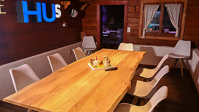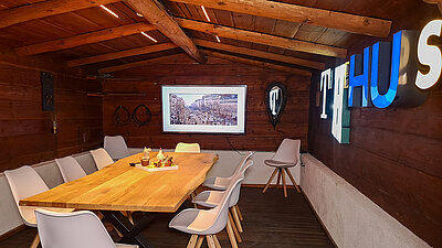 Gerne wird dieser unkonventionelle Raum auch als bei Break-Out-Session genutzt. Bei Feiern ermöglicht das Alphüttli ein gelegenes Add-on in Form von Kinderzimmer, Foto-Booth und vieles mehr.