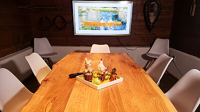 Das gemütlichste und einzige Alphüttli im Berginnern begeistert bei Sitzungen oder Mittagessen bei kleinen Gruppen.