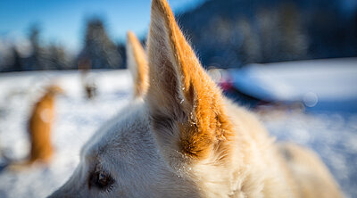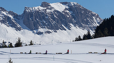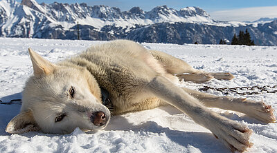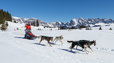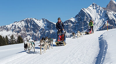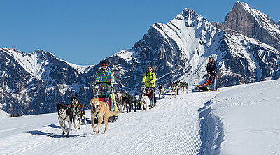 The husky fun on the Flumserberg. Every guest has the possibility to drive his own pack of dogs.