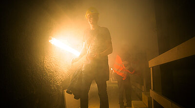 Extensive underground research infrastructure for testing and development, testing laboratory for building materials, training centre and event facilities