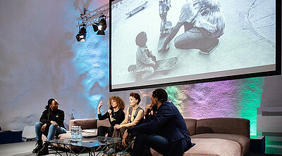 Podiumsdiskussion auf der Bühne im Steigersaal während der Tagung vom World Systemic Forum.