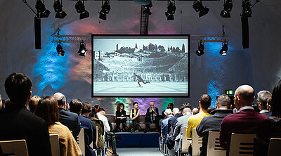 Die Bühne im Steigersaal wird genutz um Konzepte vorzustellen.