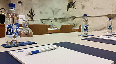 Wasser und Schreibutensilien: wir haben vor Ort was es während einer Tagung im Seminarraum braucht.