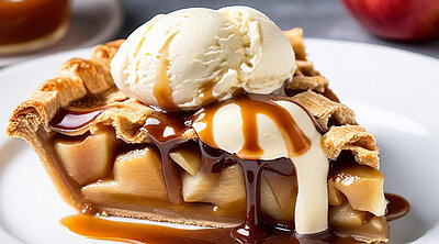 Banana pudding, American apple pie with vanilla ice cream, Pancakes with maple syrup, cheesecake in a glass with raspberries Doughnuts